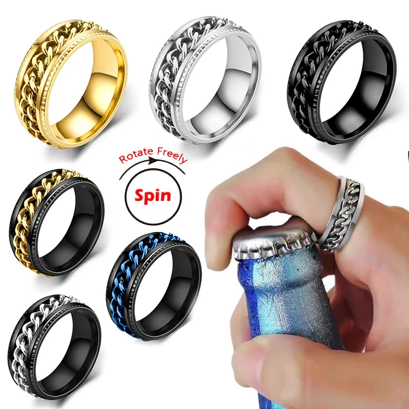 Discover the perfect blend of fashion and practicality with this punk titanium steel rotatable couple ring! Designed for both men and women, this multifunctional spinner ring features a built-in bottle opener, making it an ideal accessory for any occasion.